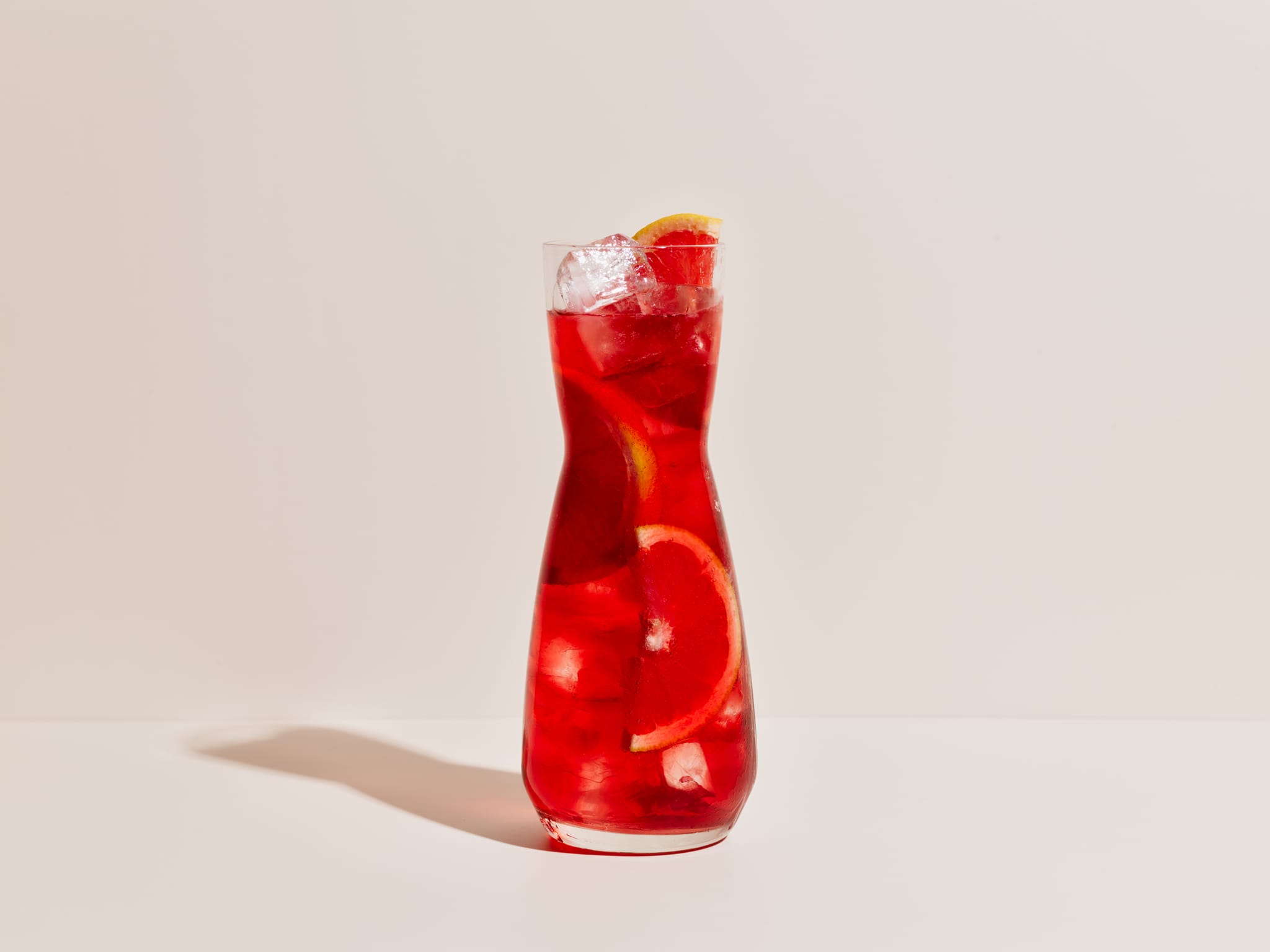 • Layer in slices of grapefruit wedges (using a long spoon to evenly push the fruit through out your drink)
