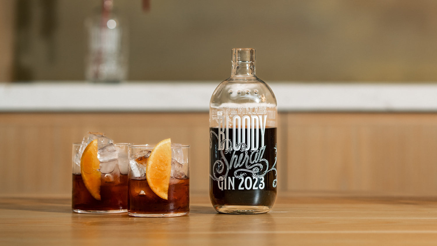 We’re kicking things off with a pre-batched recipe of our Bloody Café Negroni that returns your nearly empty bottle back to full (it’s a gin kind of magic).