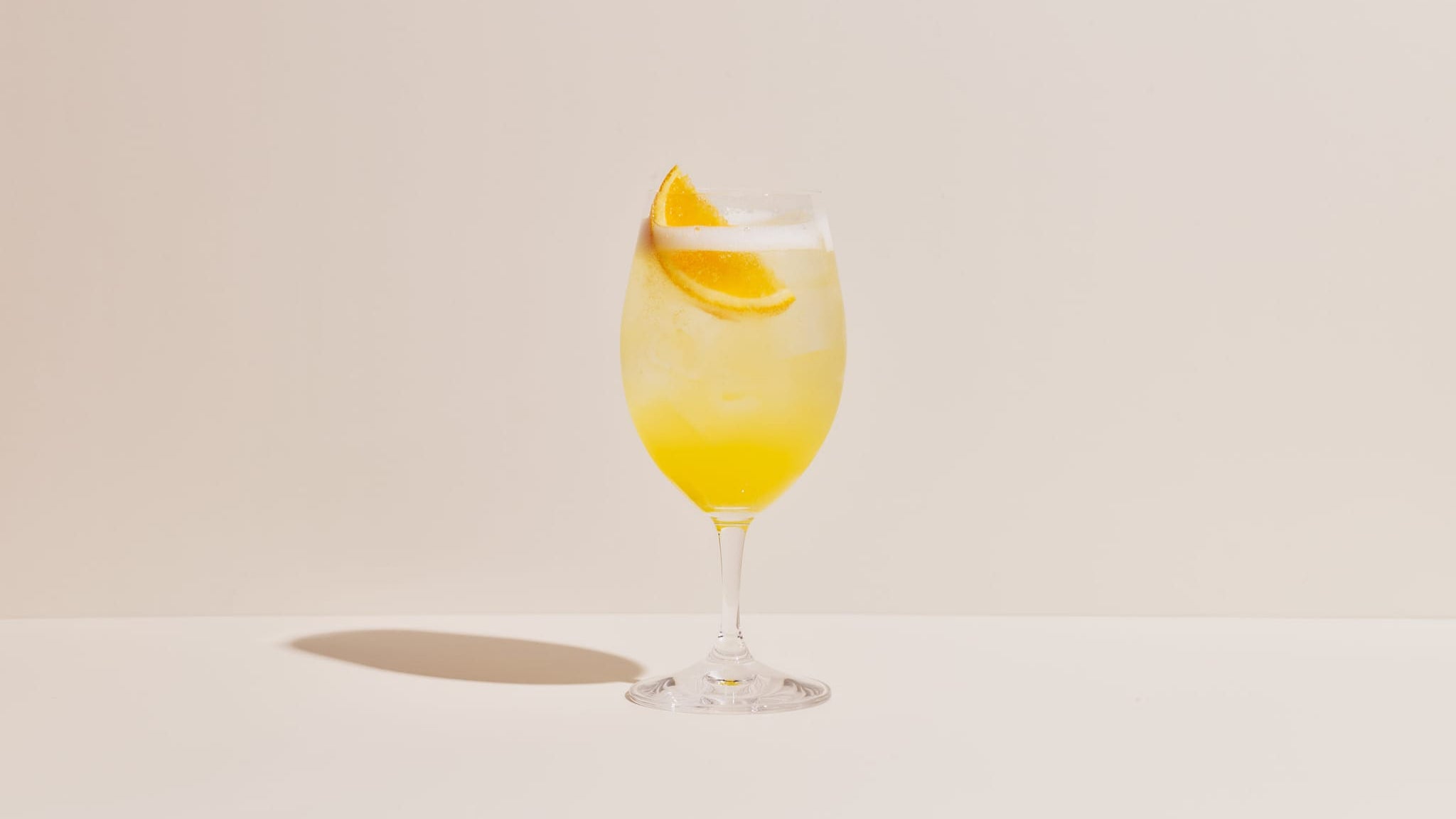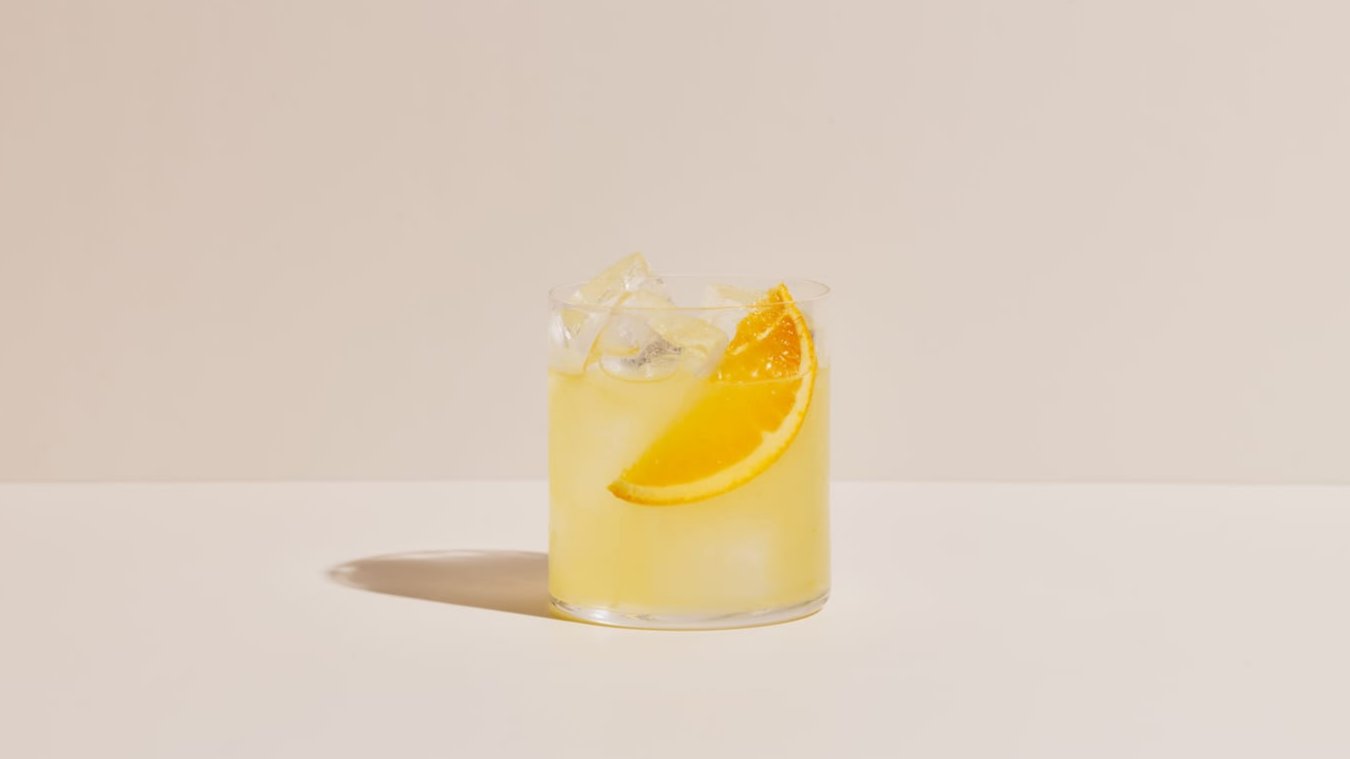 - Strain into a rocks glass over ice and garnish with an orange wedge