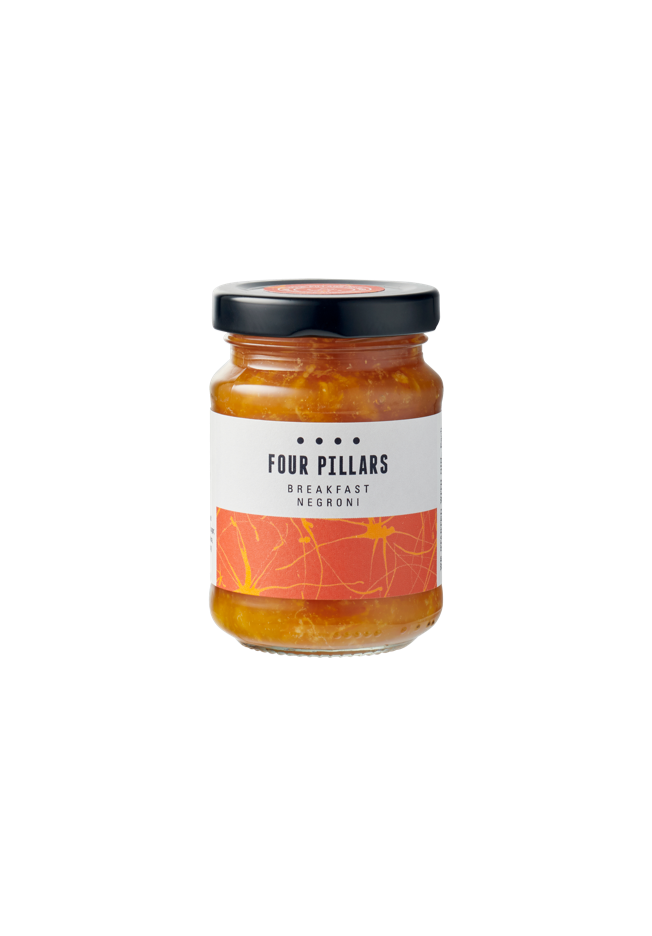 Four Pillars Breakfast Negroni is even more decadent than our straight marmalade, with an intensified richness. Also made using the gin-steamed oranges from our distillations, but with the addition of a tiny bit of our favourite aperitif Campari, it’s just a little more bitter-sweet. Delicious on a croissant!