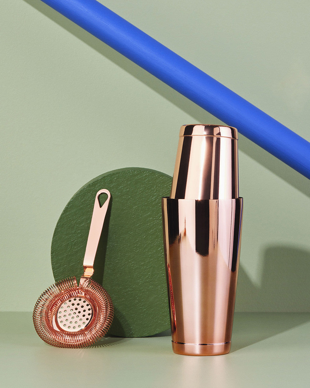 When you shake, you must strain. This set gives you 28oz and 18oz copper Toby tins for dripless shaking, or as a mixing vessels for stirring a Martini or Negroni over ice. Then, whether you shake or stir, you’ll want to strain that ice out with this fine Hawthorne strainer.
