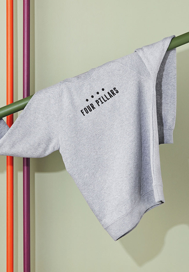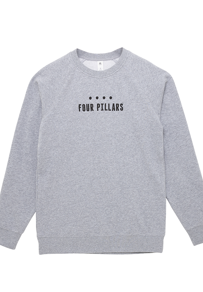 Our home in Healesville gets chilly, and sometimes you need more than a Hot Gin Toddy to keep you warm. We’ve got you covered with our Four Pillars sweater. Our Four Pillars sweater features the Four Pillars logo in black embroidery on great quality grey marle sweaters, and available in four sizes. Check out AS Colour for a size guide.