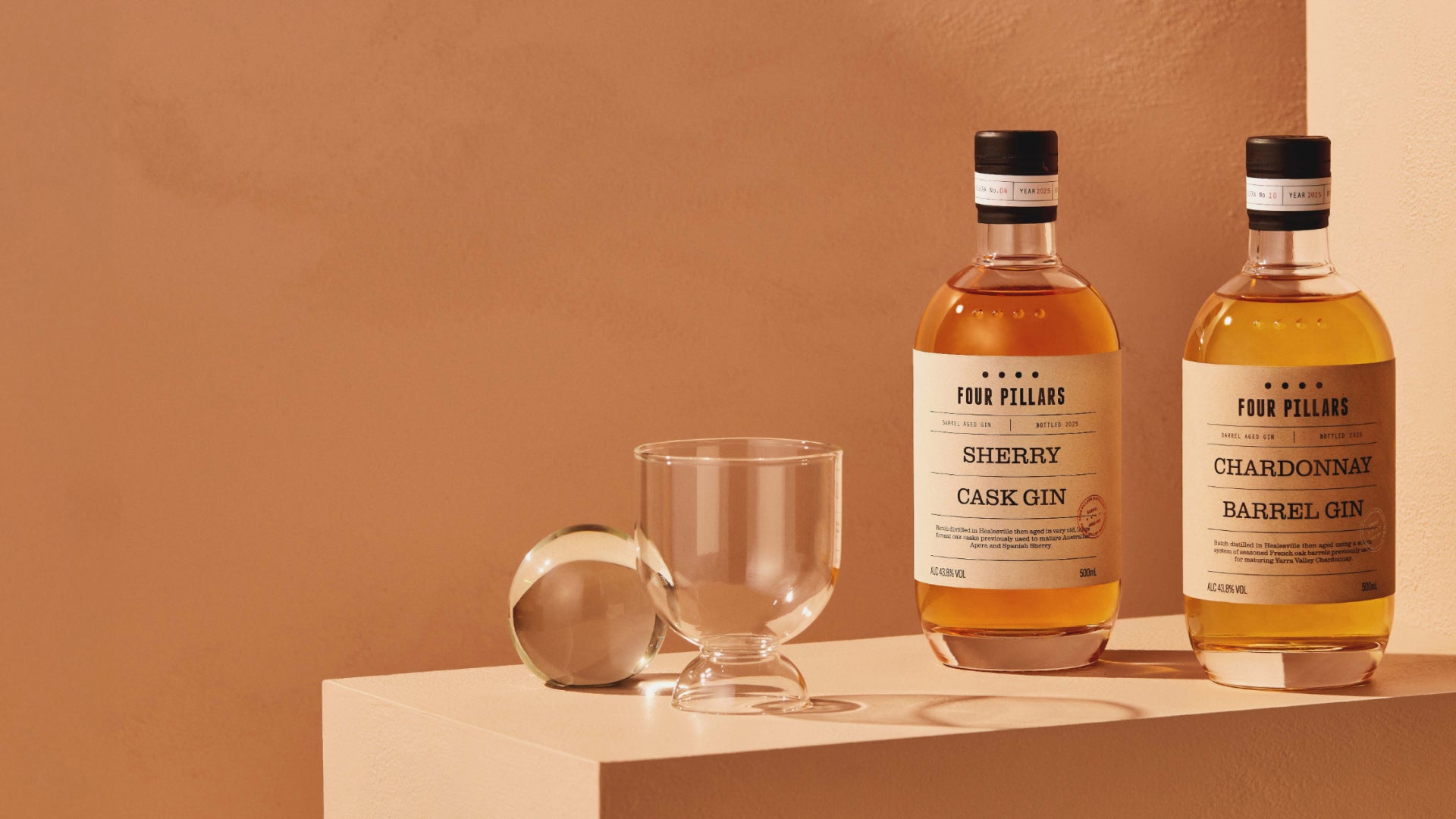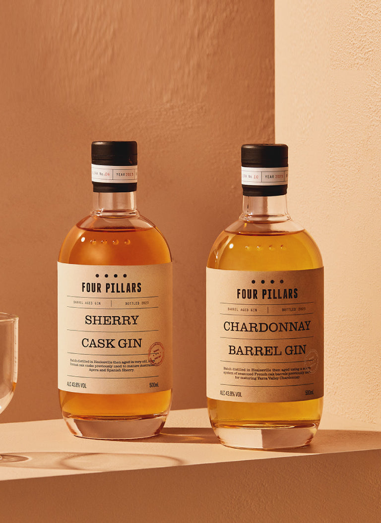 Our two barrel-aged beauties. One from our Sherry Cask solera with a huge palate of sweetness, chewy oak and aromas of pine needles, dried fruit and nuts. One aged in Chardonnay barrels with a light, creamy texture and dry finish with lingering spice. Both are outstanding sipping gins.