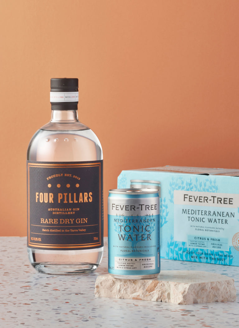 Our Rare Dry Gin makes, we humbly believe, the best damn G&T on the planet. All you need is 45mL gin, 120mL good quality tonic, and a nice big juicy wedge of orange. So here are two of the most crucial ingredients to make this G&T: a bottle of Rare Dry Gin and a case of Fever-Tree Mediterranean Tonic (eight cans, to be exact), all bundled up and ready to go. All that’s left for you to do is stock up on oranges! Because once you’ve tried a Rare Dry G&T, it won't be long before you’re having another (and another...).